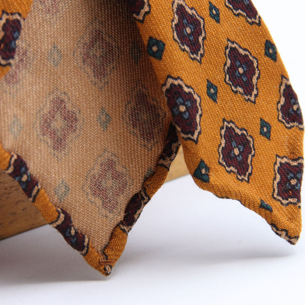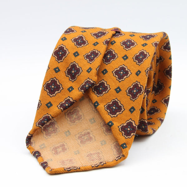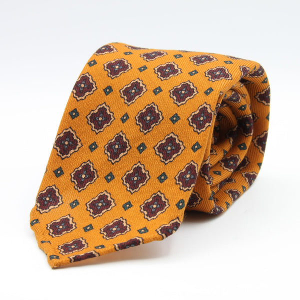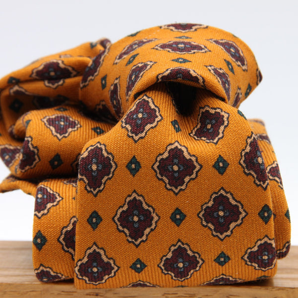Cravatta Cruciani & Bella - Printed Wool - Unlined - Golden Yellow, Beige, Red Wine and Blue Motif Tie #9749