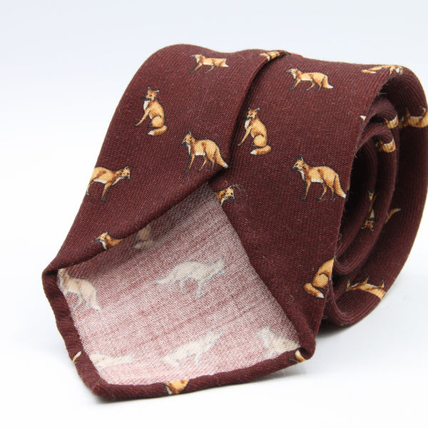 Cravatta Cruciani & Bella - Printed Wool - Unlined - Red Wine Tie with Light Brown Fox pattern #9864
