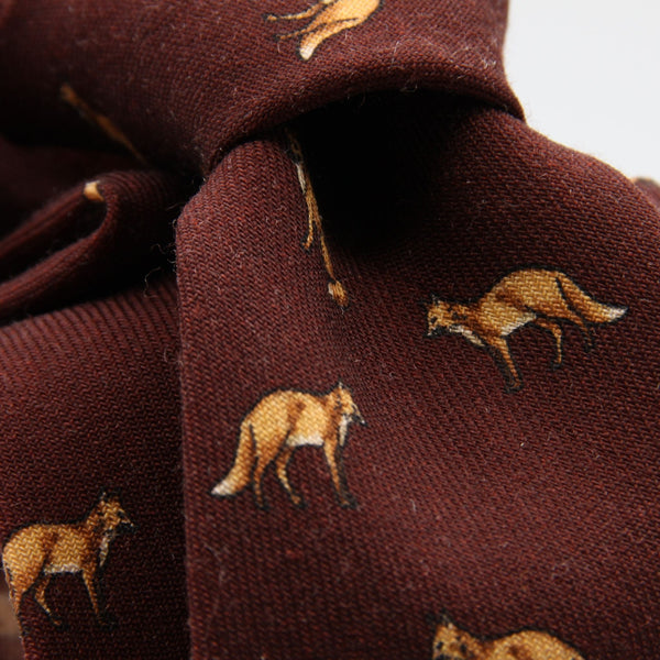 • Red Wine Tie with Light Brown Fox pattern