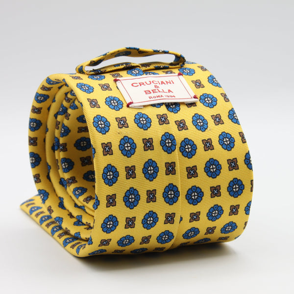 Cruciani & Bella - Printed Silk - Self Tipped - Yellow, Blue and Brown Motif Tie #9612