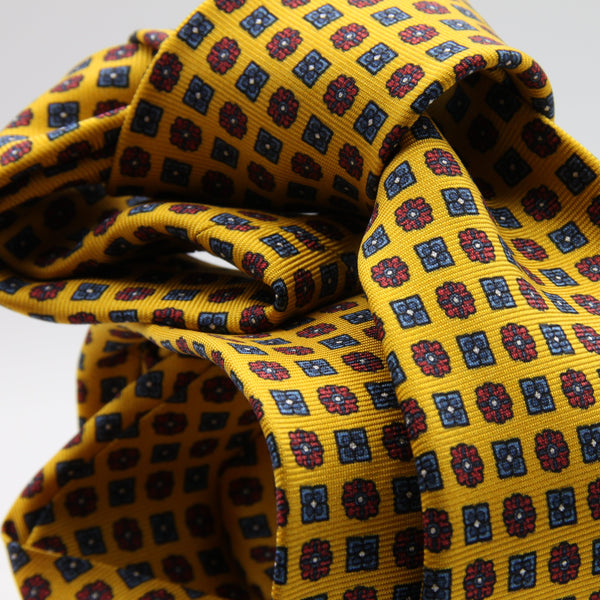 Cruciani & Bella - Printed Silk - Self Tipped - Yellow, Red and Denim Blue Motif Tie #9614