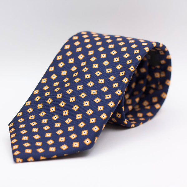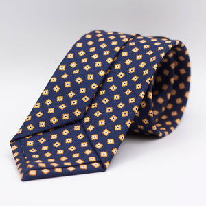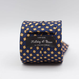 Holliday & Brown for Cruciani & Bella 100% printed Silk Self Tipped Blue, yellow and White motif tie Handmade in Italy 8 cm x 150 cm