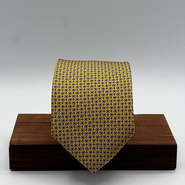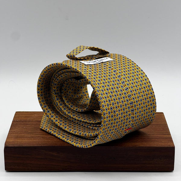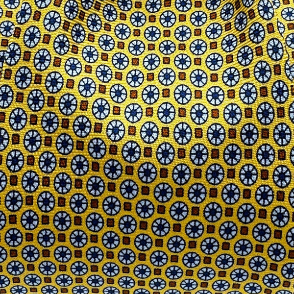 N.O.S. Cruciani & Bella - Printed Silk - Yellow, Light Blue and Rust Motif Tie #9915