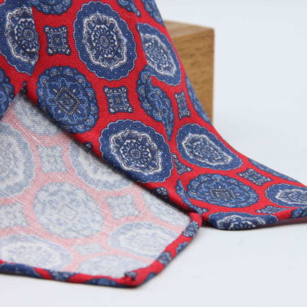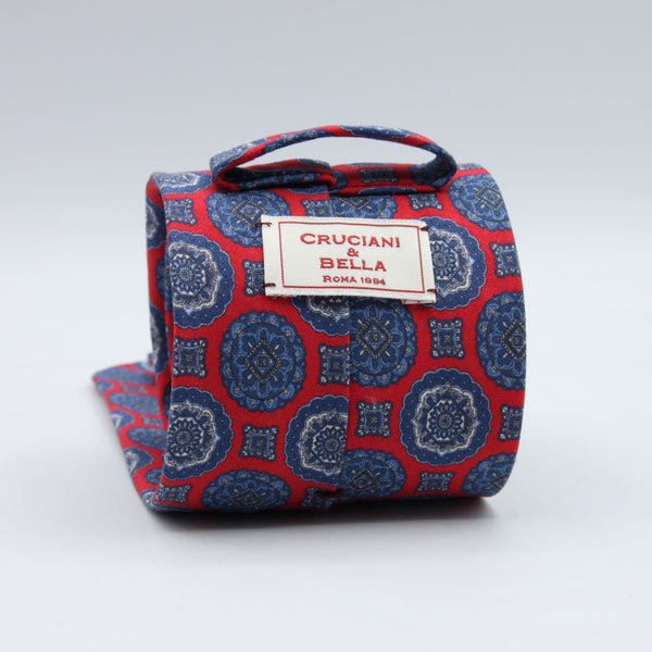 Cruciani & Bella - Linen & Silk - Unlined - Red, Blue and Grey Motifs Printed tie #10083