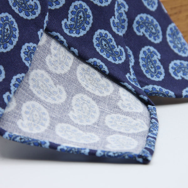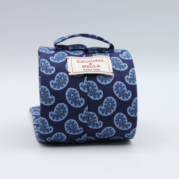 Cruciani & Bella - Linen & Silk - Unlined - Royal Blue and Denim Blue Printed tie #10079