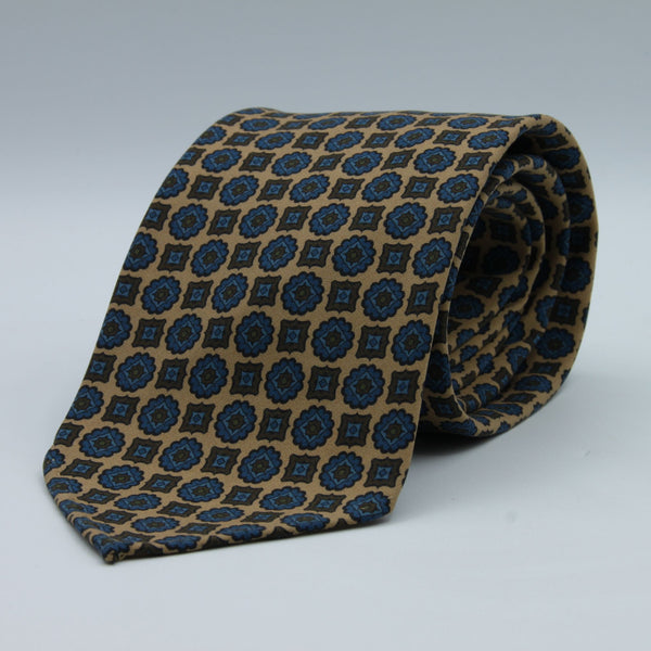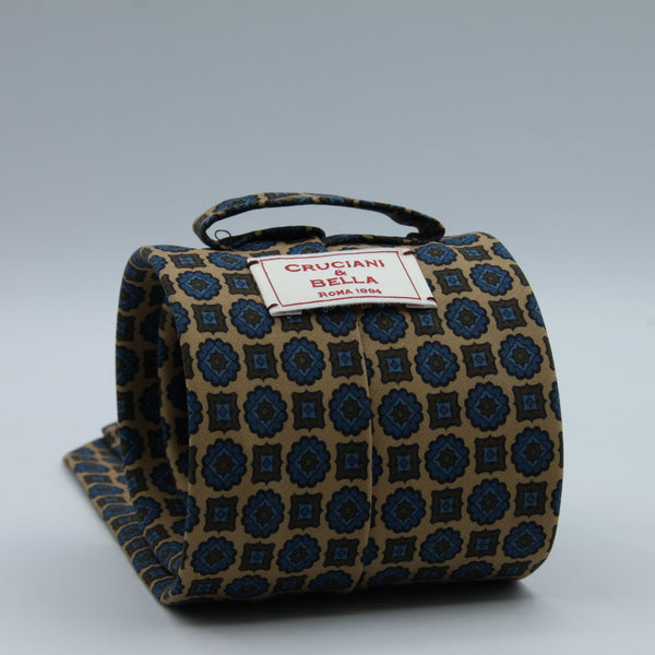 Cruciani & Bella - Madder Silk - Unlined - Beige, Brown and Blue Printed Motif Tie #9994