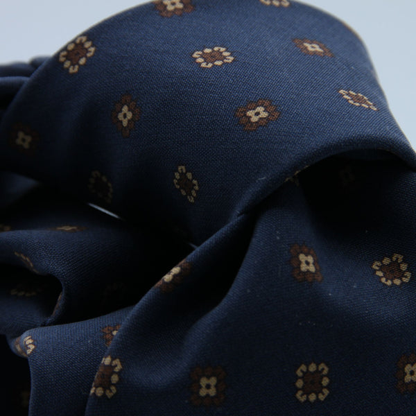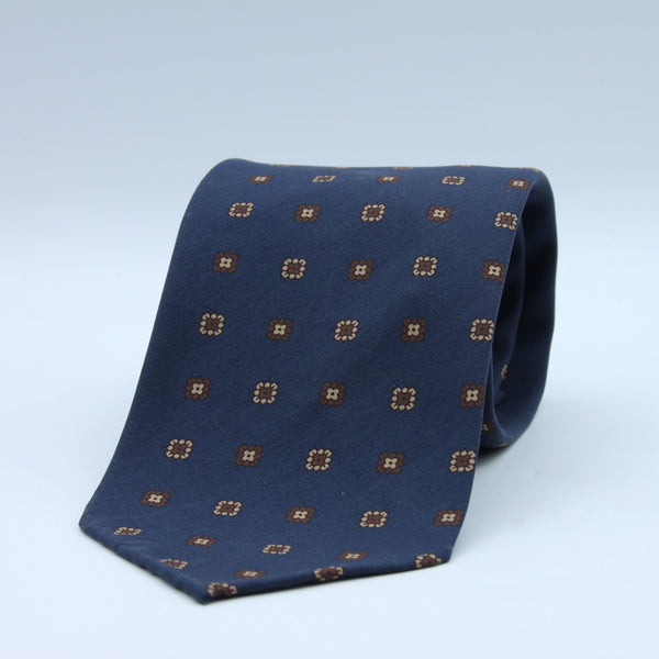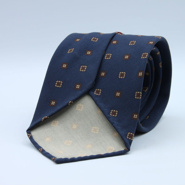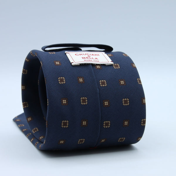 Cruciani & Bella - Madder Silk - Unlined - Blue, Brown and Beige Printed Motif Tie #9992