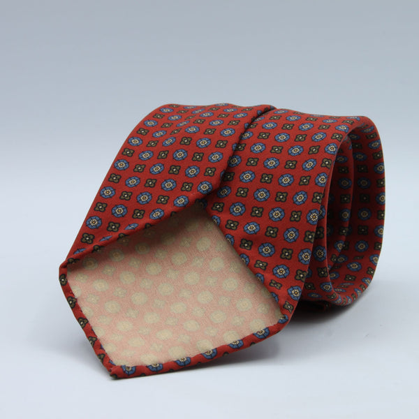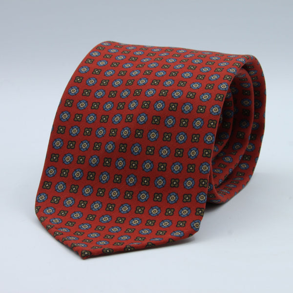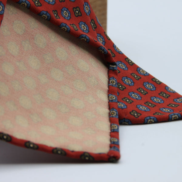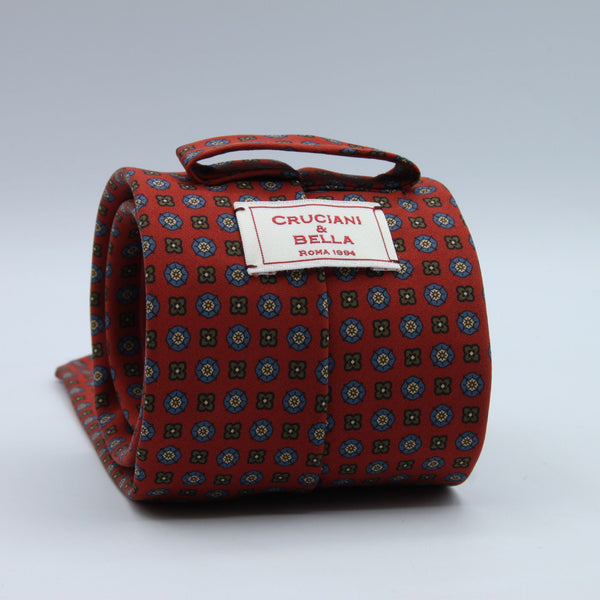 Cruciani & Bella - Madder Silk - Unlined - Red, Brown and Light Blue Printed Motif Tie #9995