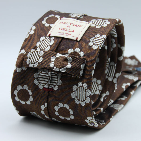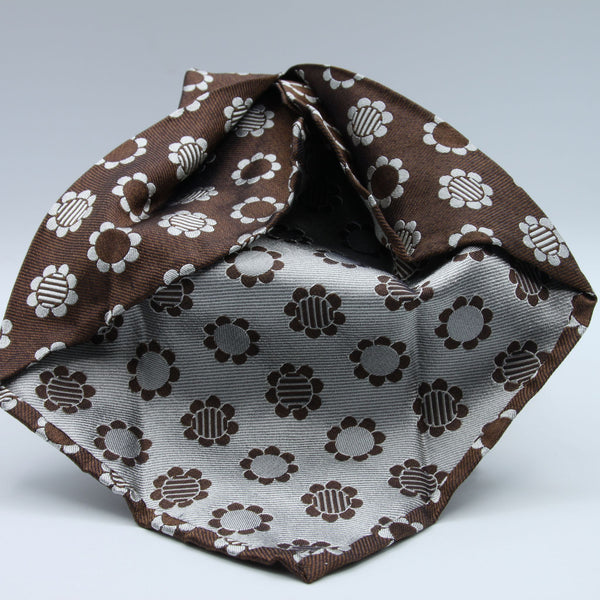 Cruciani & Bella - Seven Folds Woven Jacquard Silk - Brown and Off-White Motif Tie #3102