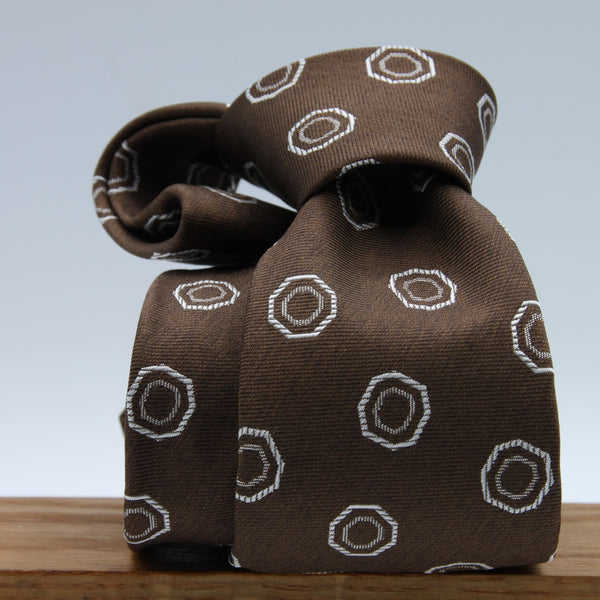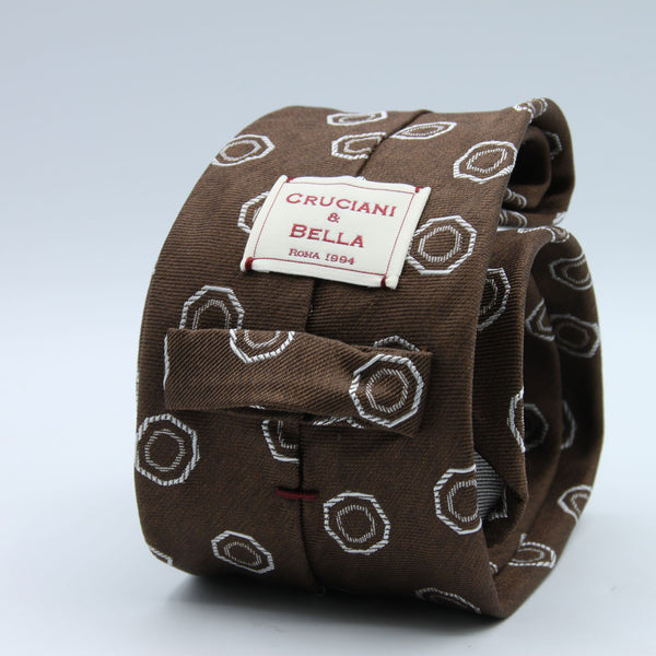 Cruciani & Bella - Seven Folds Woven Jacquard Silk - Brown and Off-White Motif Tie #9678