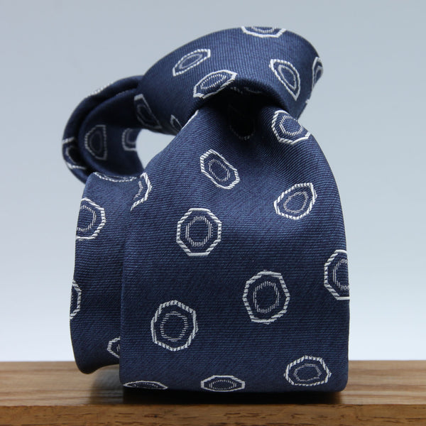 Cruciani & Bella - Seven Folds Woven Jacquard Silk - Light Denim Blue and Off-White Motif Tie #3105