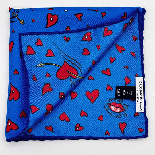 Cruciani & Bella - Silk - Light Blue , Red and White Love Motif Pocket Square #10012