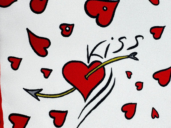 Cruciani & Bella - Silk - White and Red Love Motif Pocket Square #10011