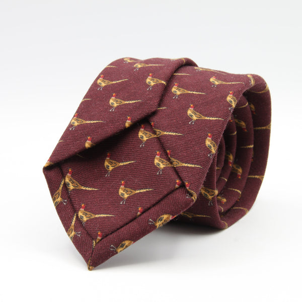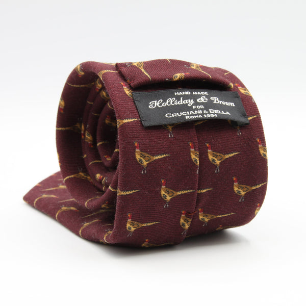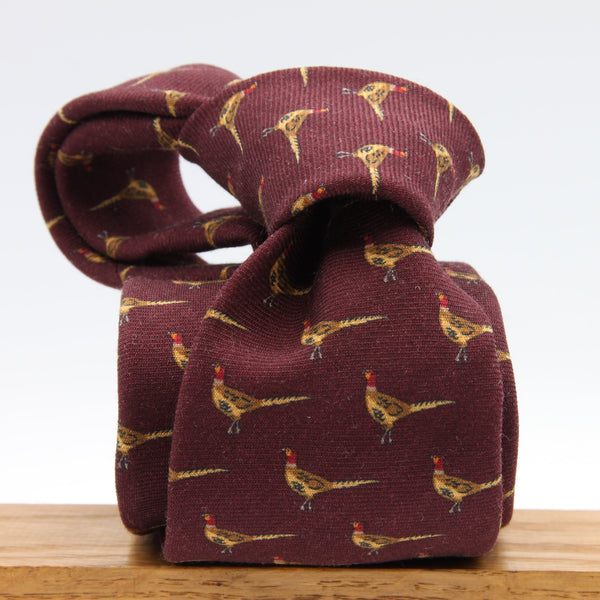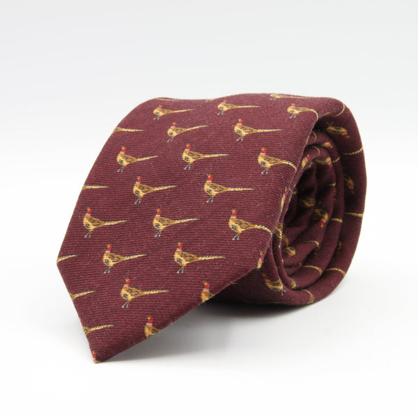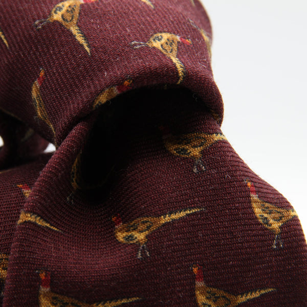 Holliday & Brown - Printed Wool - Red Wine with Pheasants motif tie #9645