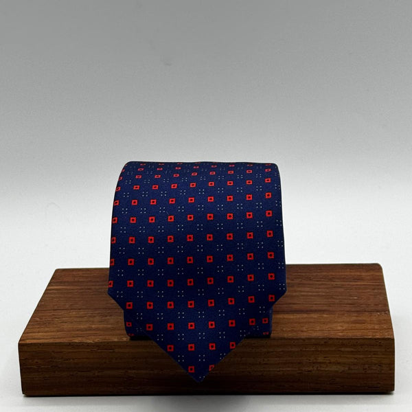 N.O.S. Cruciani & Bella - Printed Silk - Blue and Red Motif Tie #9967