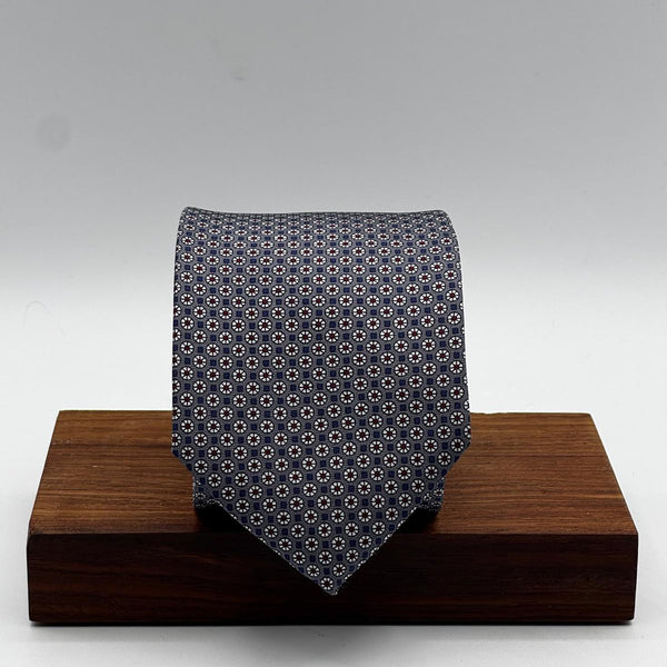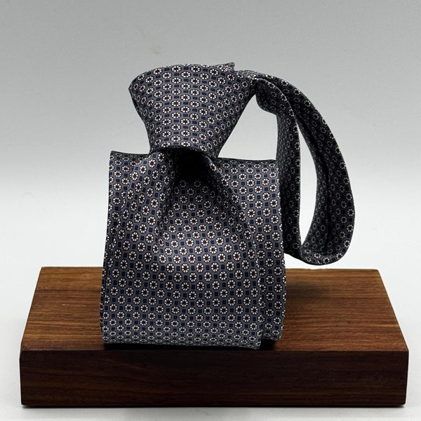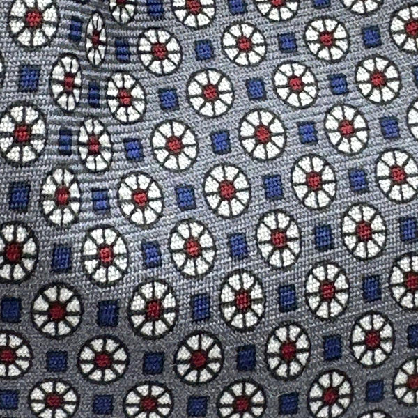 N.O.S. Cruciani & Bella - Printed Silk - Grey, Red and Off White Motif Tie #9917
