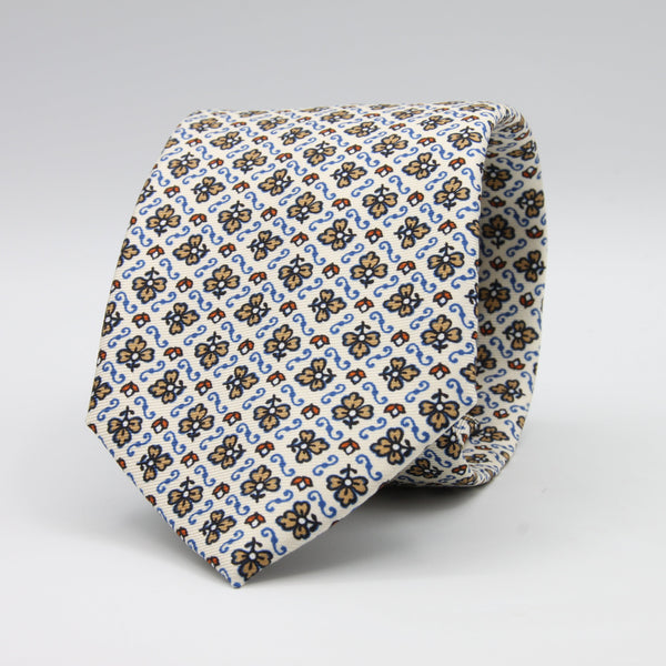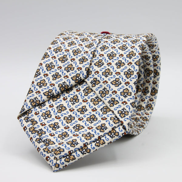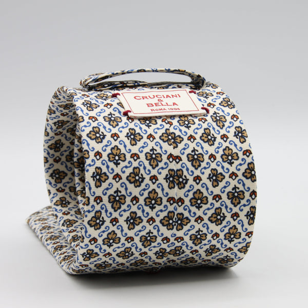 Cruciani & Bella - Printed Silk - Self Tipped - Off-White, Cream, Rust and Sky Blue Motif Tie #9459