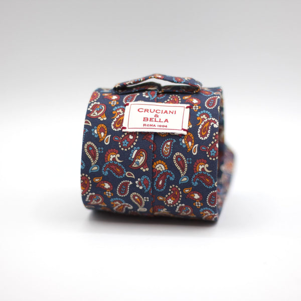 Cruciani & Bella - Printed Madder Silk  - Unlined - Blue, Red wine, Blue, Orange and White PaisleyTie