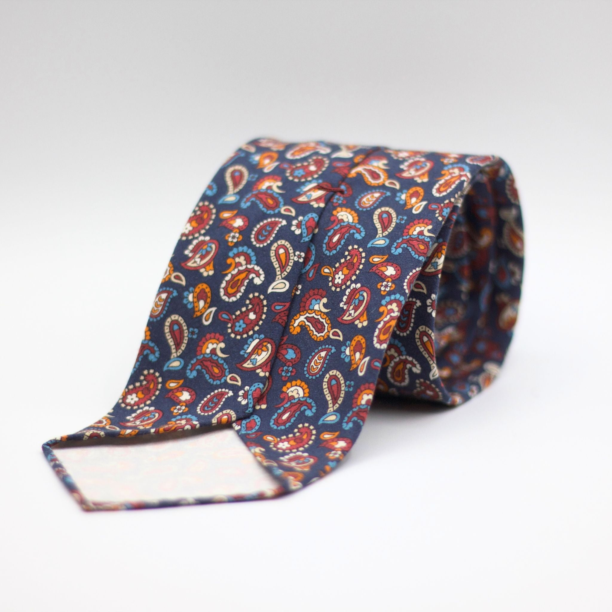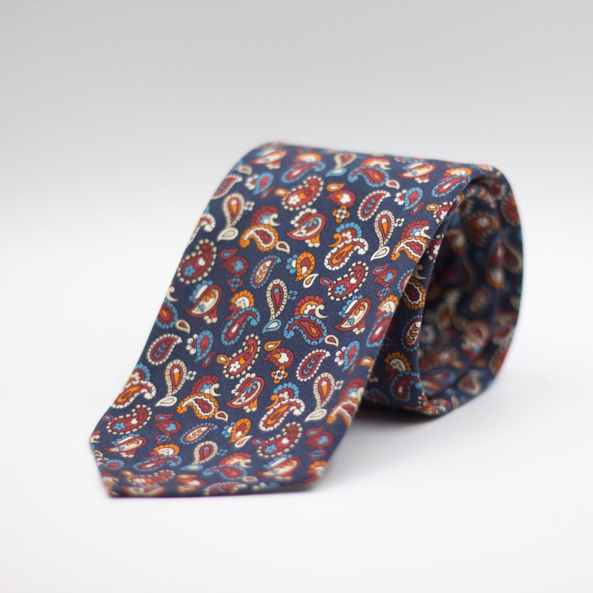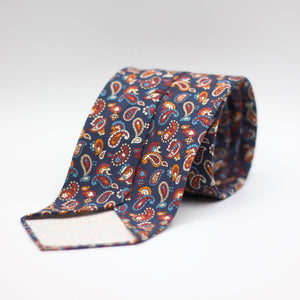 Cruciani & Bella - Printed Madder Silk - Unlined - Blue, Red wine, Blue, Orange and White PaisleyTie #8699