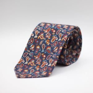 Cruciani & Bella - Printed Madder Silk  - Unlined - Blue, Red wine, Blue, Orange and White PaisleyTie #8699