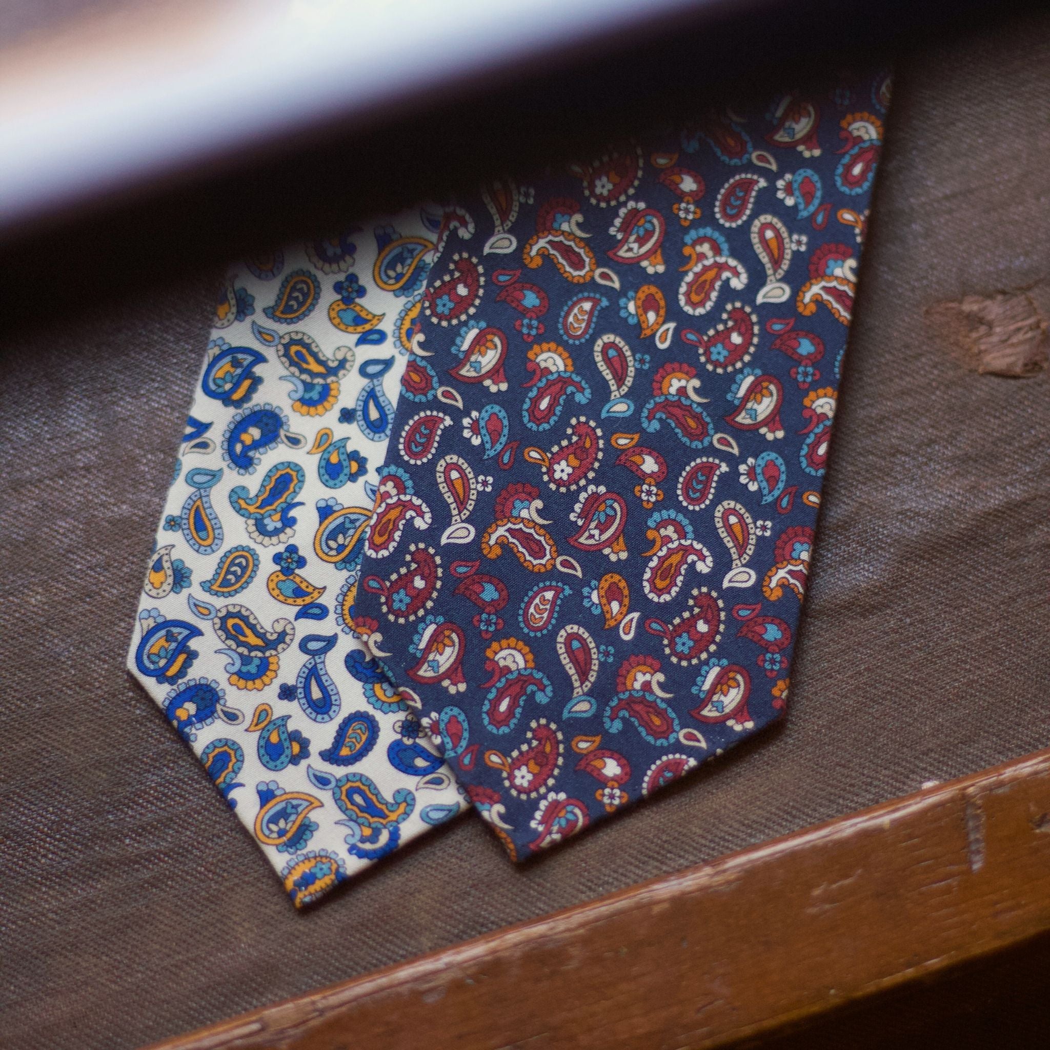 • Blue, Red wine, Blue, Orange and White PaisleyTie